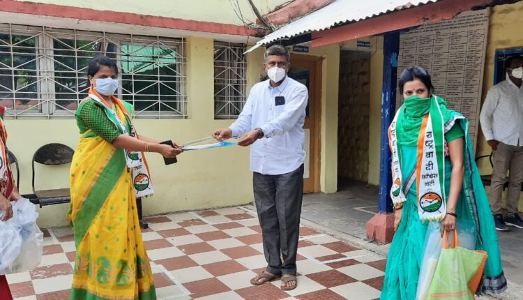 राष्ट्रवादी काँग्रेसतर्फे पोलीस ठाण्यात फेसशिल्डचे वाटप