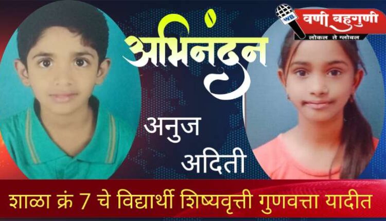 वणी नगर परिषद अतंर्गत शाळा क्र. 7 ही शैक्षणिक व शालेय उपक्रमांसाठी शहरात प्रगत शाळा म्हणून ओळखल्या जाते. या शाळेतून शिक्षण घेऊन गेलेले विद्यार्थी आज शैक्षणिक क्षेत्रात अतिशय पुढे आहेत. याच श्रृंखलेत यावर्षी शिष्यवृत्तीच्या स्पर्धात्मक परीक्षेत अनुज विजय चव्हाण व अदिती अमोल झाडे या दोन विद्यार्थ्यांनीने गुणवत्ता यादीत स्थान मिळविले आहे. शिष्यवृत्ती परीक्षेची तयारी करून घेण्यासाठी शाळेत अतिरिक्त वर्ग घेतले जाते. शाळेतील दोन्ही विद्यार्थ्यांना पुढील तीन वर्षापर्यंत शासनाकडून शिष्यवृत्ती मिळणार आहे. यशस्वी विद्यार्थ्यांनी आपले यशाचे श्रेय उच्च श्रेणी मुख्याध्यापक गजानन कासावार, पदवीधर शिक्षक चंदू परेकर, विजय चव्हाण व इतर शिक्षकांना दिले आहे.